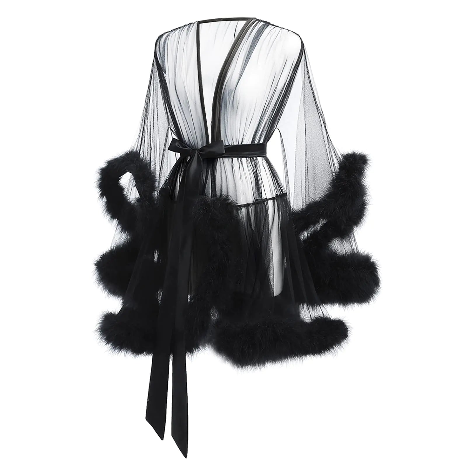 ✔ Elegant & Sexy Design: Sheer tulle robe with soft feather trim creates a stunning, playful look for any special occasion.